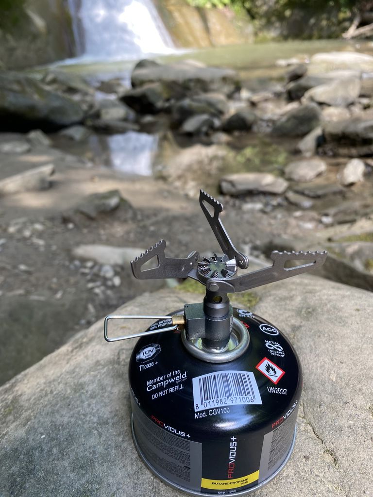 Arzator din titan - ultra-usor 26g, pliabil, conceput pentru buteliile cu gaz ( cu montare prin insurubare)