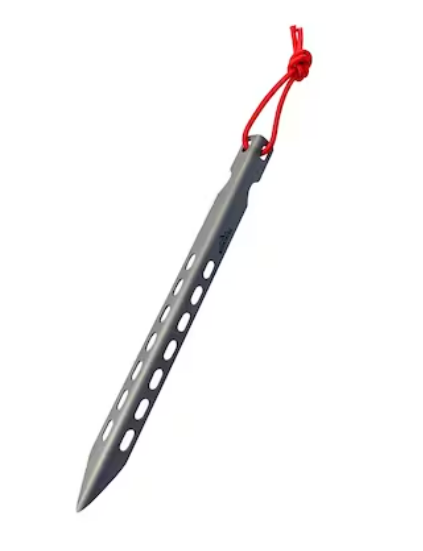 Setul de cuie pentru cort din titan marca Mountrekk nu adauga greutate suplimentara rucsacului, cantarind doar 12gr/buc.